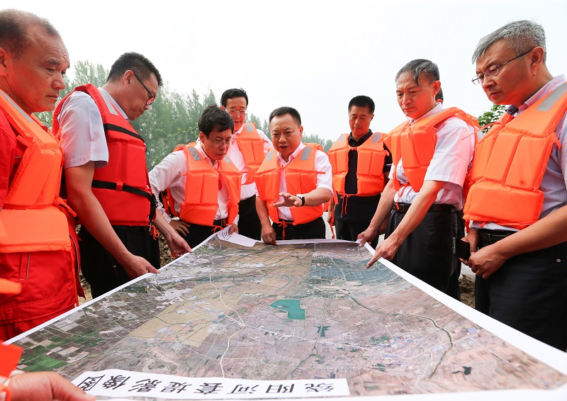 李國英在繞陽河決口堤段會(huì)商部署封堵?lián)岆U(xiǎn)工作
