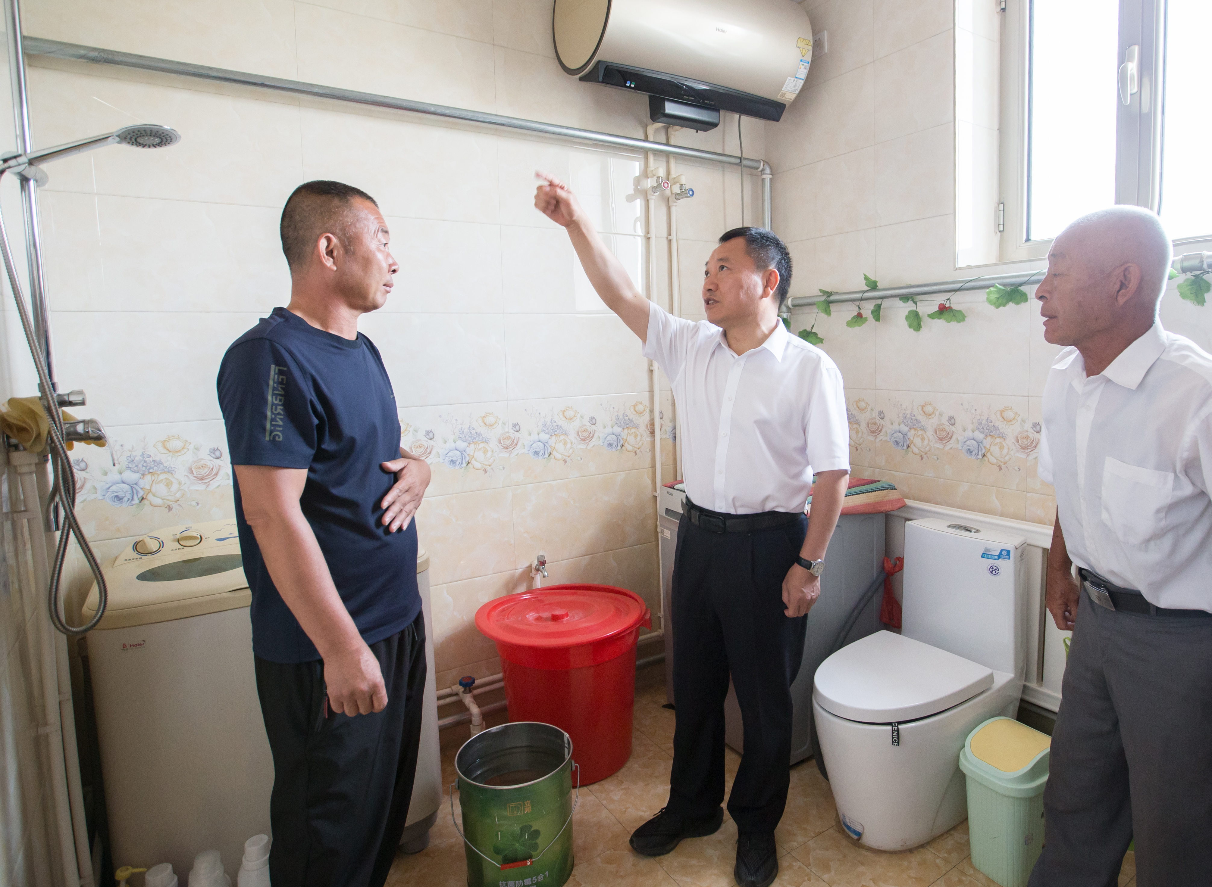 李國英在內(nèi)蒙古自治區(qū)土默特左旗白廟子鎮(zhèn)大一家村村民家中查看用水情況