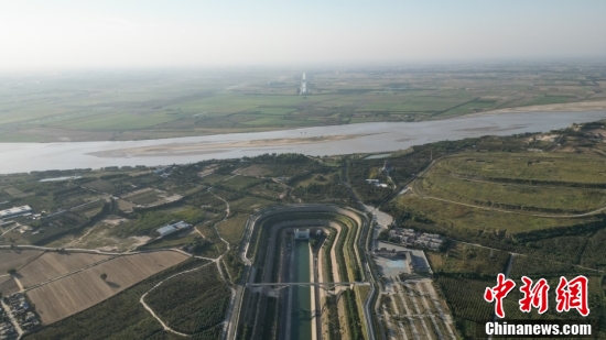 南水北調(diào)中線總干渠穿黃隧洞入口處。(無(wú)人機(jī)照片)