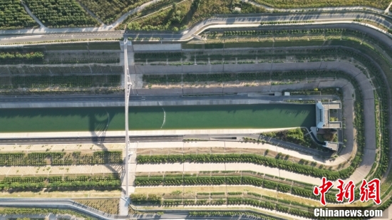 南水北調(diào)中線總干渠與黃河十字相交。 (中新社記者 李超慶 攝)