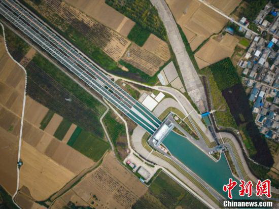 圖為“南水”進(jìn)入渡槽。